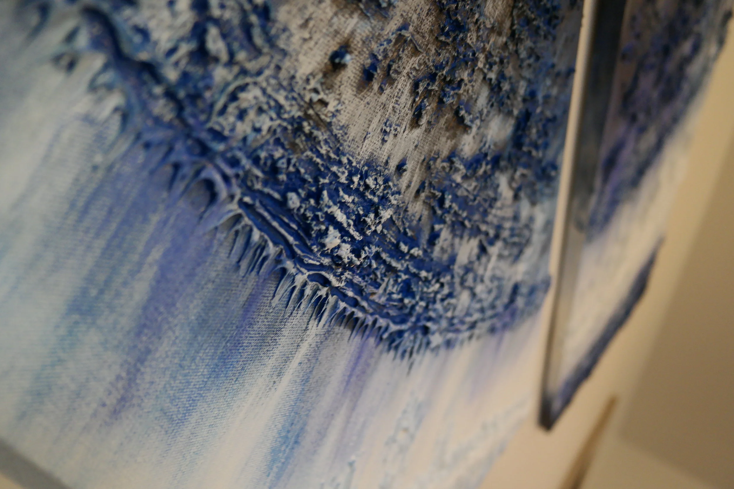 I use acrylic paint as my base but, I love texture so I mix in other elements like salt and apply it to the canvas with a palette knife. For the feathers I use acrylic paint then lay the feathers on it then apply more paint, I build it up layer by layer which takes a while. Every piece has layer upon layer of material and paint to make them one.